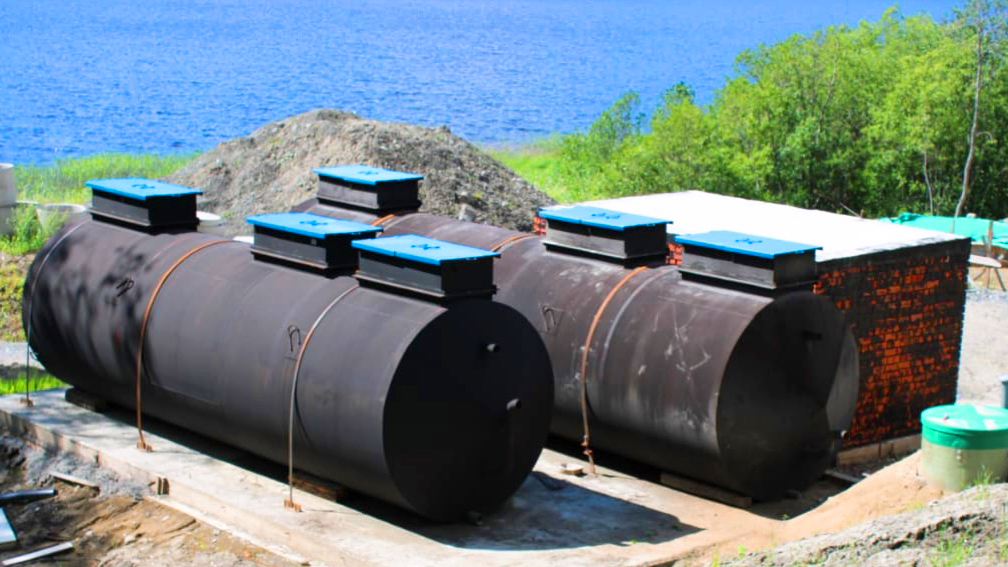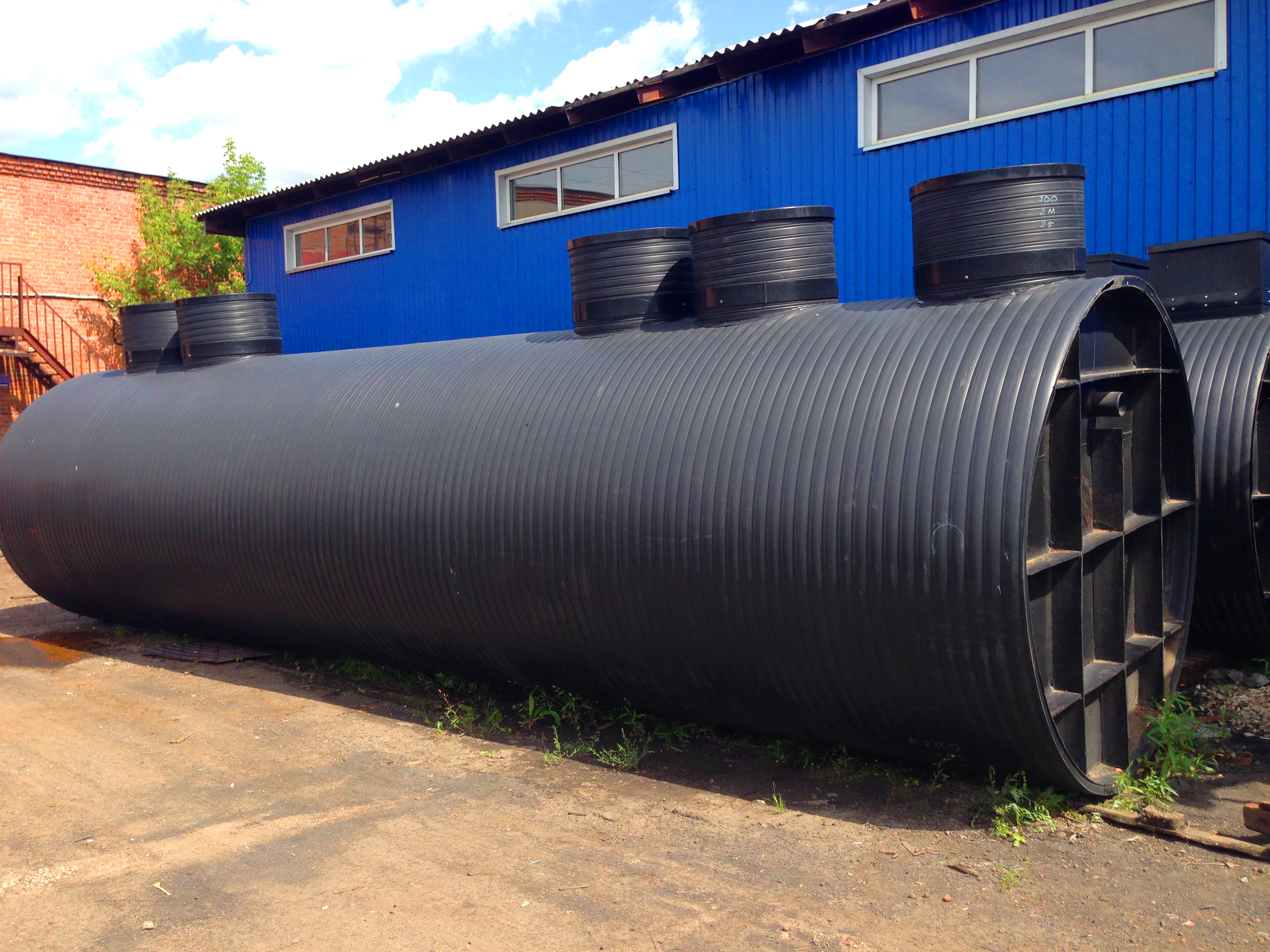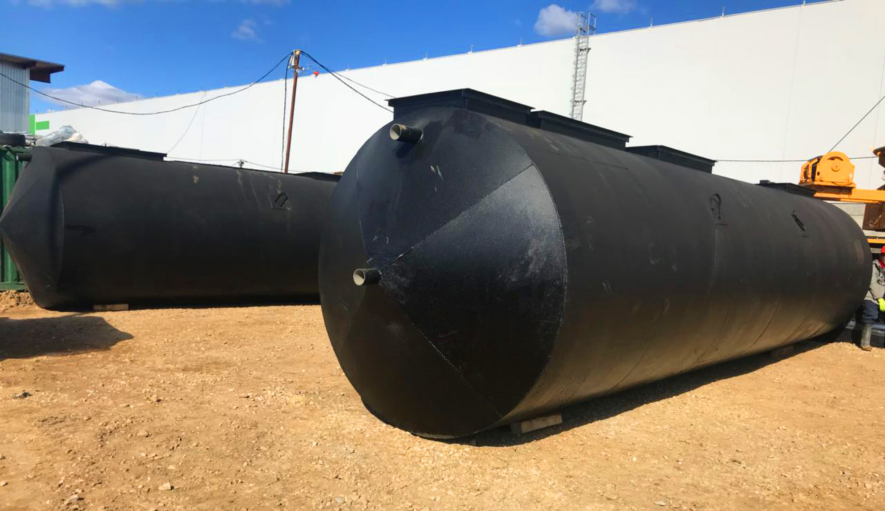 Представляет собой резервуары с колодцами обслуживания и трубной обвязкой. Изготавливается из низколегированной стали с многослойным антикоррозийным покрытием.  Возможен вариант исполнения корпуса из спиральновитой трубы из полиэтилена низкого давления (ПНД) или ударопрочного полипропилена.