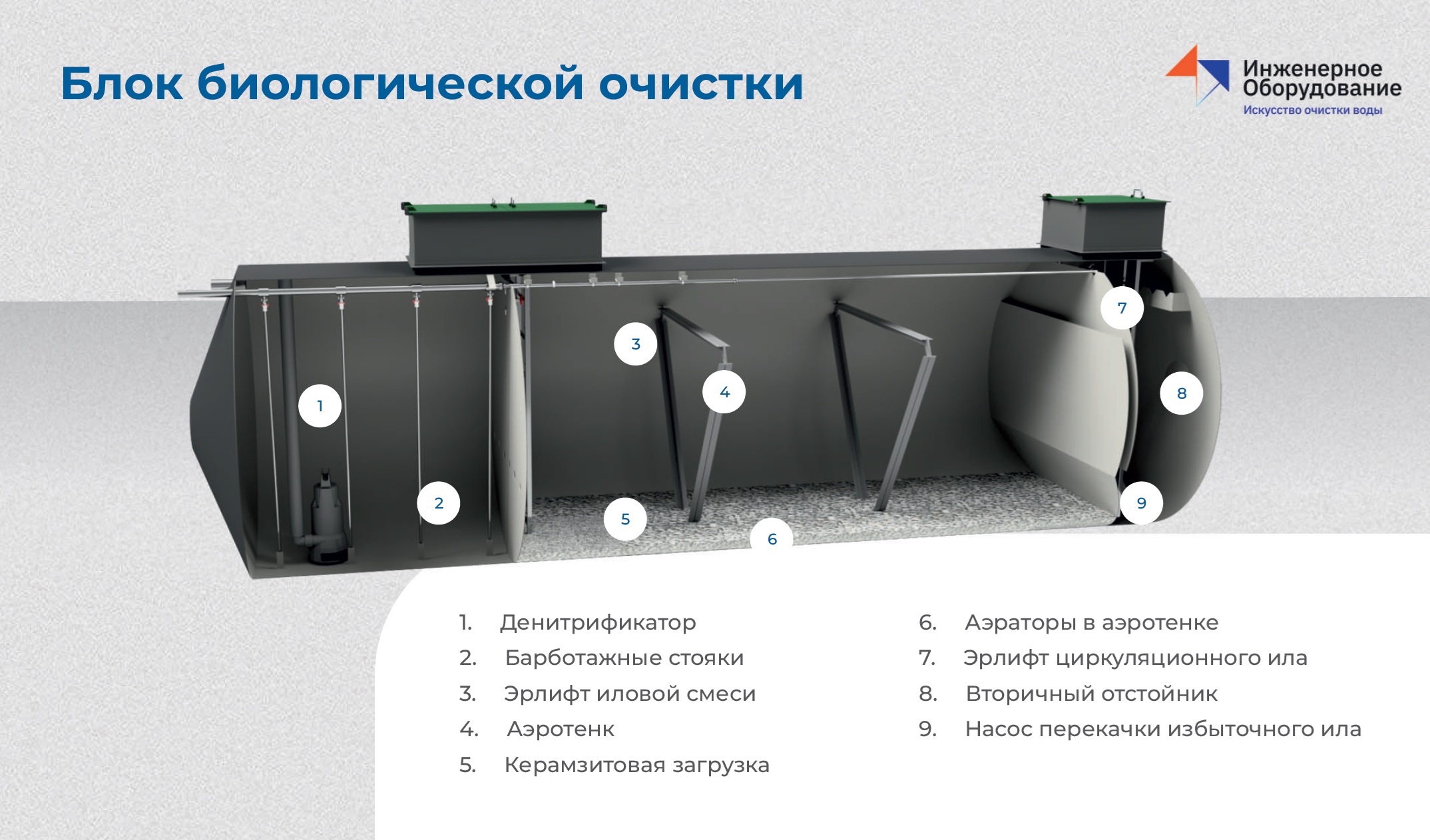 • ГЛУБОКАЯ многоступенчатая БИОЛОГИЧЕСКАЯ ОЧИСТКА с использованием иммобилизующей загрузки.