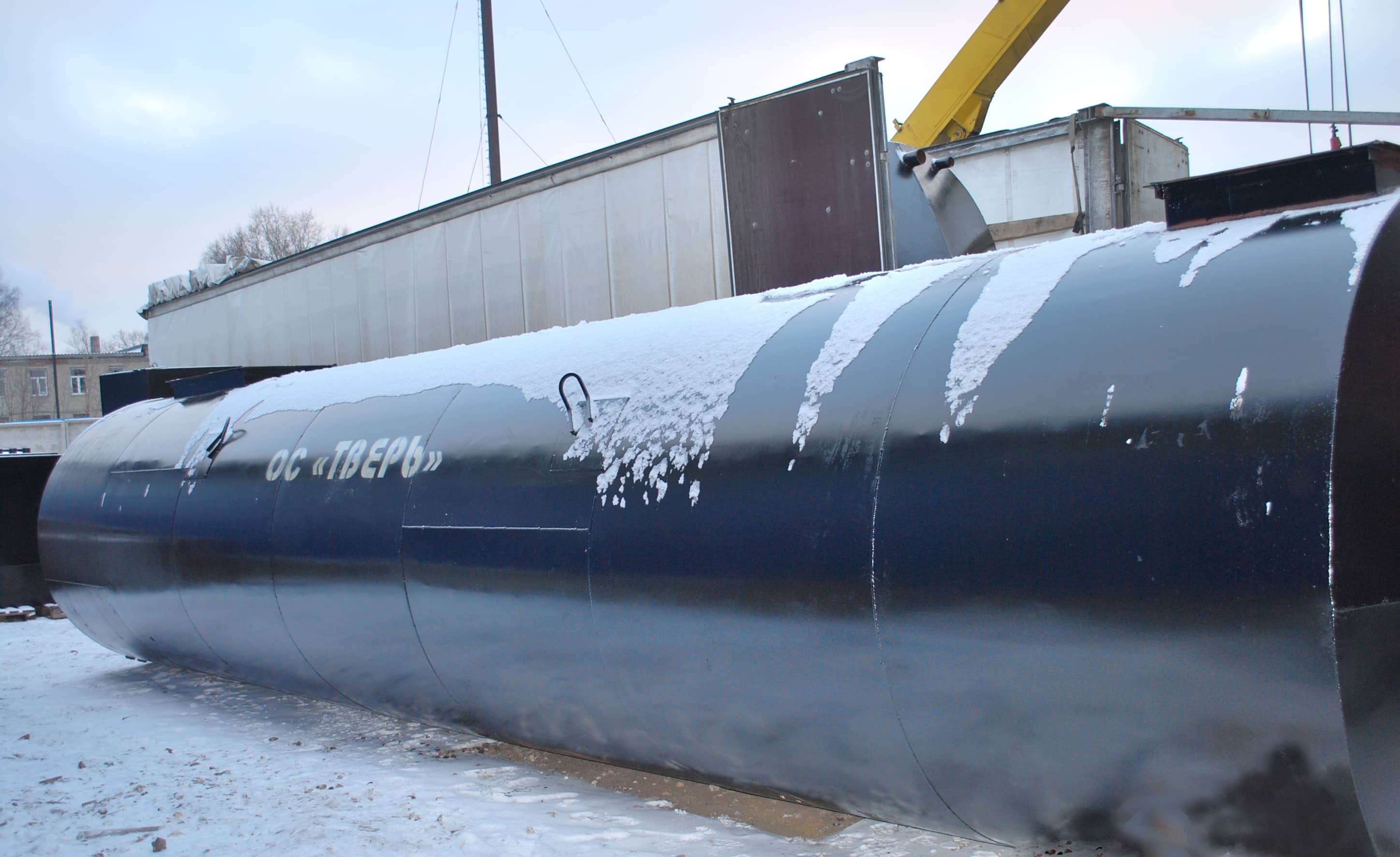 Габариты очистного сооружения: 2 емкости длиной 11600 / диаметром 2400 / весом 13800 кг.